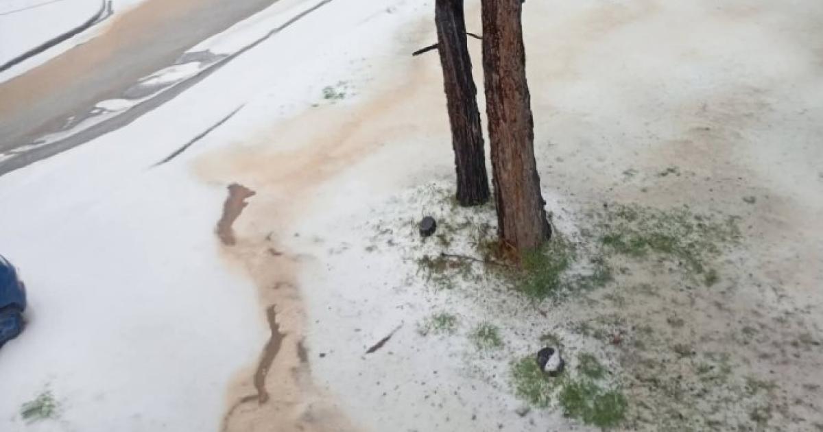 Το χαλάζι κάλυψε το οδόστρωμα και τα οχήματα, ενώ οι θυελλώδεις άνεμοι προκάλεσαν μικρές υλικές ζημιές, ρίχνοντας κλαδιά σε διάφορα σημεία.